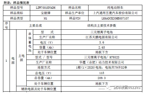 此次采用NCA三元锂电池的是上汽通用五菱旗下的宝骏E100,续航里程250公里,电池系统能量密度142WH/KG,由天鹏电源提供电芯,华霆动力制造电池包。